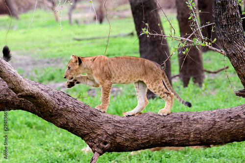 Obraz premium Lion cub on a log