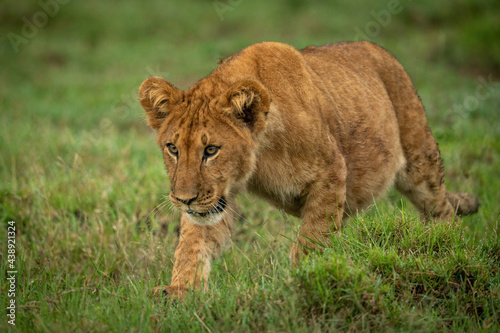 © Nick Dale, Obraz premium Lion cub passes mound with head down