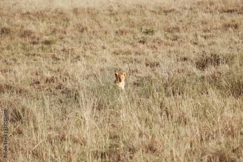 Naklejka premium Lion cub sitting in the grass, Maasai Mara, Kenya