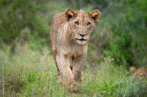 Obraz premium lion cub walking in long grass