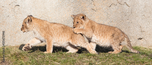 © michaklootwijk, Fototapeta premium Lion cubs exploring it's surroundings