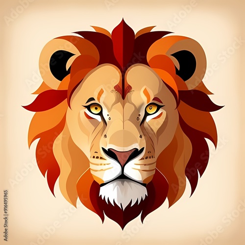 Fototapeta premium Lion 3D icon featuring a lifelike head with bold, piercing eyes, intricate...