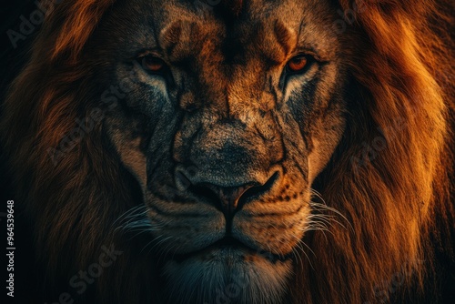 © Hafiz, Naklejka premium Lion dystopicpunk symmetrical balance, with copy space