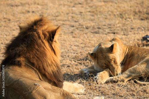 Fototapeta premium Lion et Lionesse au repos dans le bush