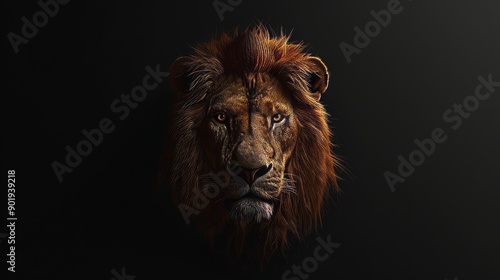 Naklejka premium lion face on a black background, 16:9, copy and text space