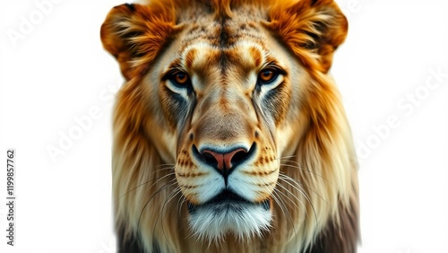 © FrameFinesse, Fototapeta premium Lion face shot isolated on white background