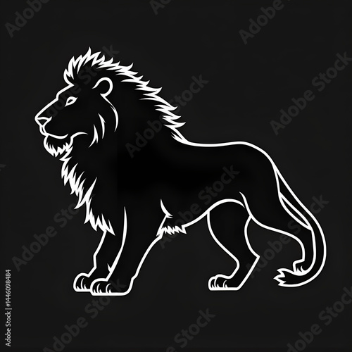 Fototapeta premium Lion Face Silhouette SVG – Black and White Vector of Majestic Lion Head
