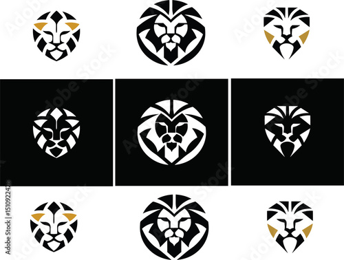 © Muhammad, Fototapeta premium Lion face vector icon pack with multiple styles flat, line art, and button on white.