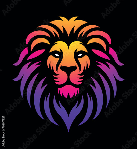 © Artoholics, Fototapeta premium Lion face vector image front view on dark background. Lion head line art sticker and logo template.