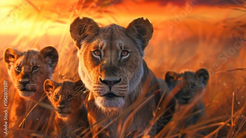 © Shodaime, Naklejka premium Lion Family in the African Savanna