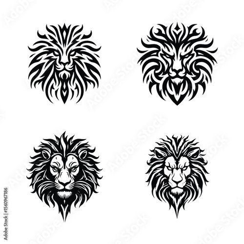 © AnilChandra, Fototapeta premium Lion Head Icon Silhouette Bundle Vector Illustration