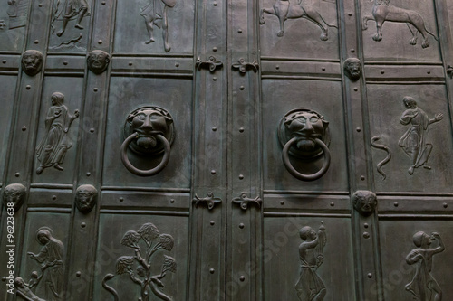 © Ruslan Gilmanshin, Fototapeta premium Lion head knocker on old metal gate