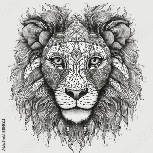 © maxa0109, Fototapeta premium Lion Head. Lion Face with sacred geometry or ornamental mandala. Hand drawn Illustration for tattoo or t-shirt design, poster, emblem, badge, patch. Lion Head, Tattoo art, Artwork
