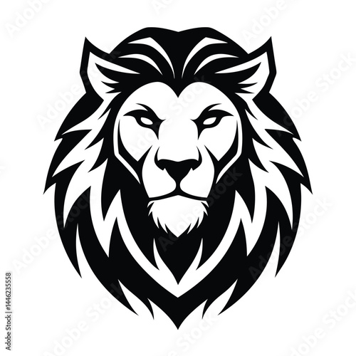 © Shipon, Obraz premium Lion Head Logo Isolated, Black and White, Graphic, Wild Animal, King, Mascot, Feline