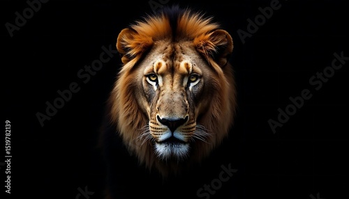 © willem, Fototapeta premium Lion Head Looking Directly at Camera on Black Background