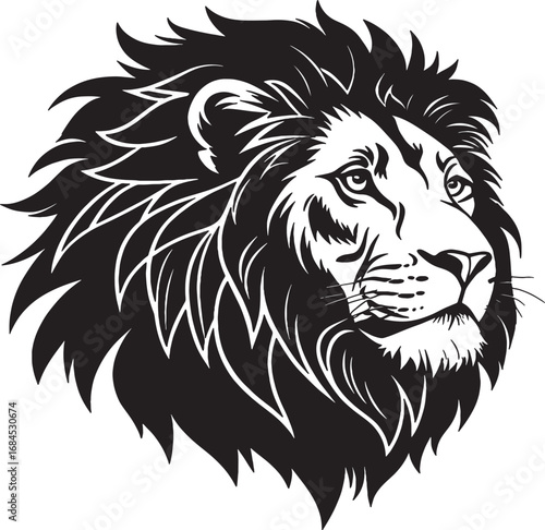 © MH Mithu, Fototapeta premium Lion head looking gigantic silhouette vector with white background