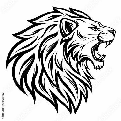 Fototapeta premium lion head vector illustration, Tribal Lion Head Vector Art – Fierce Animal Tattoo Desig