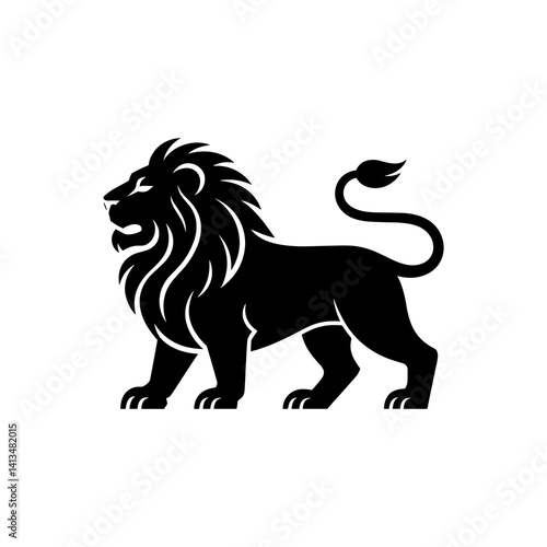 © MdMohaymenul, Obraz premium Lion head vector logo, Wild roaring lion king head tattoo set, Front and side view predator face, full lions heads icon black and white ink sketch silhouettes design, Eps, Ai, Svg format