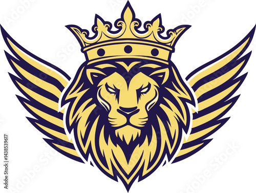 Obraz premium Lion head with crown in royal majestic golden color vector art featuring...