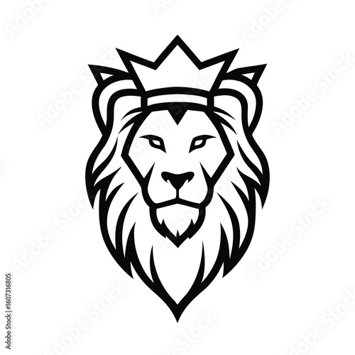 © misttahmina, Obraz premium lion head with crown logo design vector template