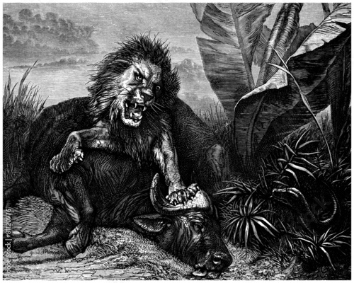 Fototapeta premium Lion Hunting Buffalo