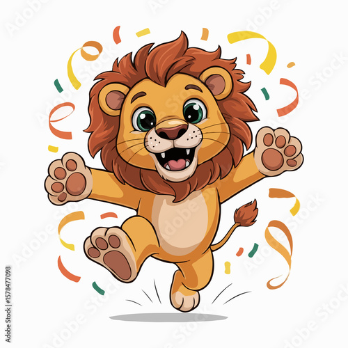 © Zyram Graphic, Fototapeta premium lion illustration character posing happy design