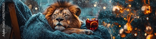 © Артур Комис, Naklejka premium lion in a chair with wine. Selective focus