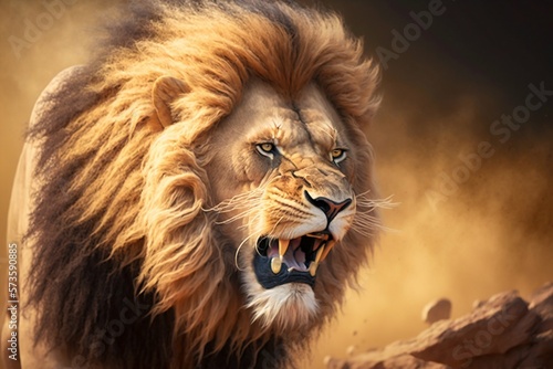 © NovaVision, Fototapeta premium Lion in Africa closeup. Generative AI