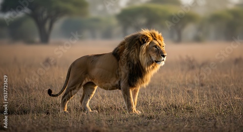Naklejka premium Lion in Grassy Field