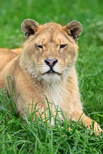 Obraz premium Lion in green grass