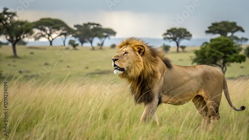 © Mahdi, Obraz premium lion in the savannah lion in the wild