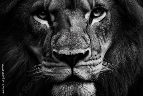 © namdarcreative, Fototapeta premium lion isolated on black background, Black and white