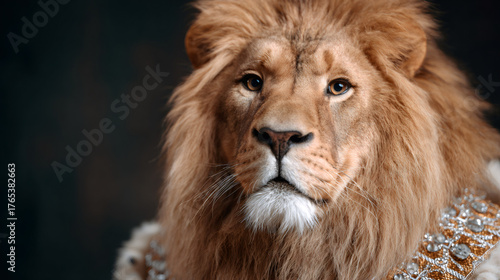 Fototapeta premium Lion king wearing regal gem embroidered collar