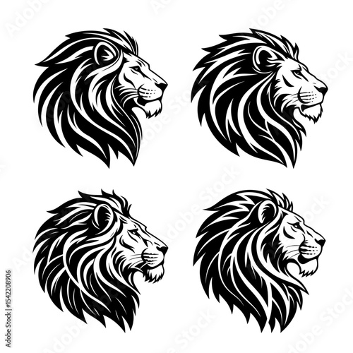 © Najmul, Fototapeta premium Lion logo and icon silhouette vector set