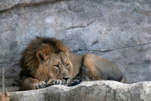© Simonetta, Naklejka premium Lion Lying on Rocks