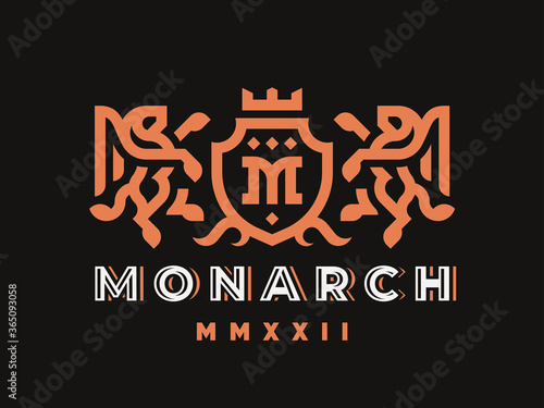 Naklejka premium Lion modern logo. King heraldic emblem design editable for your business....