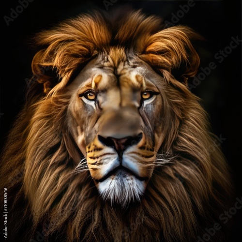 © BrandwayArt, Naklejka premium Lion portrait on dark background