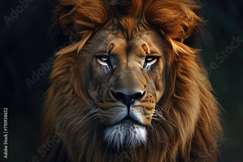 © BrandwayArt, Naklejka premium Lion portrait on dark background