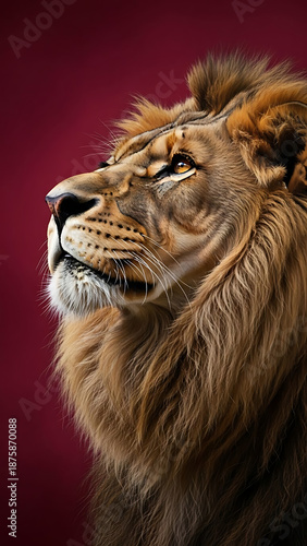 Naklejka premium Lion Portrait on Dark Red Background