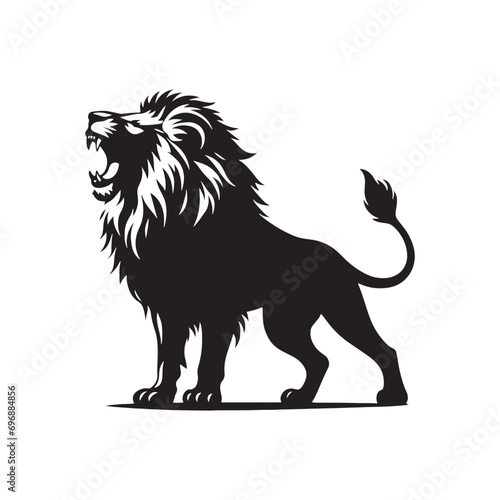 Obraz premium Lion Roaring Silhouette: Regal Mane in Striking Outline, Jungle King's Bold...