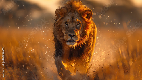 Naklejka premium lion running in the wild