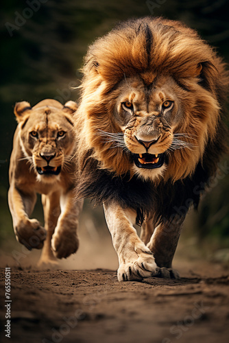 Fototapeta premium lion's duel, macrography, family, Hyper realistic, detail quality,...