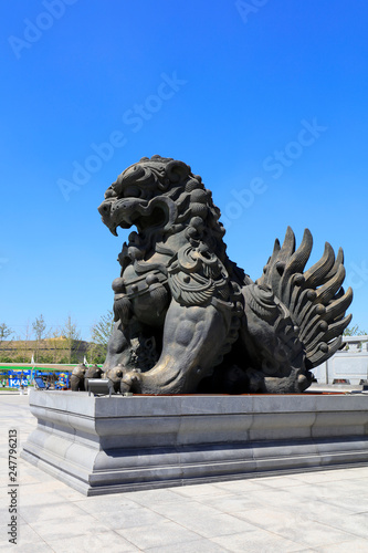 © YuanGeng, Fototapeta premium Lion sculpture in a park