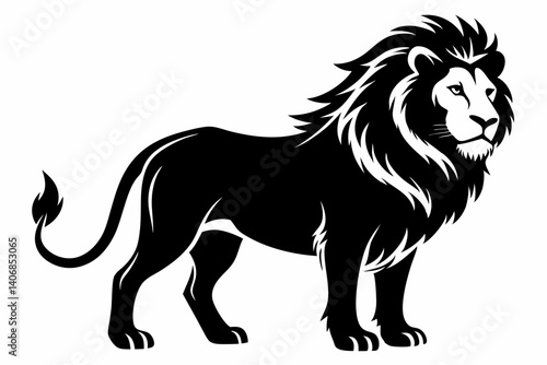 © kanchanrani, Obraz premium lion silhouette line art vector illustration