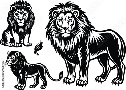 Obraz premium Lion Silhouette set black Vector design, Lion Illustration Vector animal set Design for Printing and Craft Projects