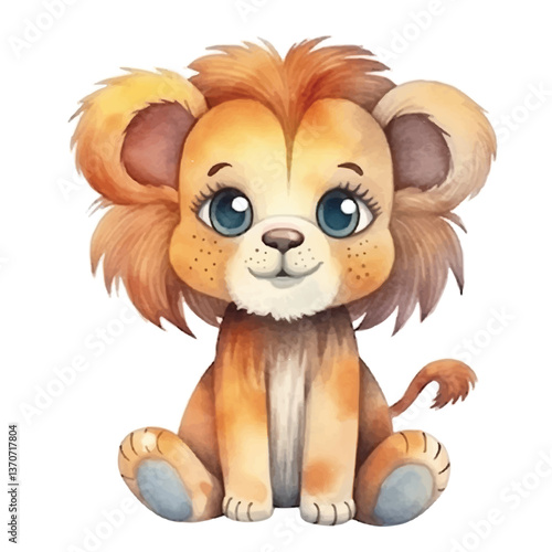 © yuniazizah, Obraz premium lion sitting cute watercolors illustration on white background