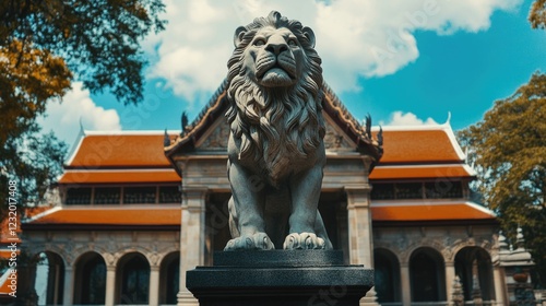 © Goncharenko, Naklejka premium Lion statue outside building