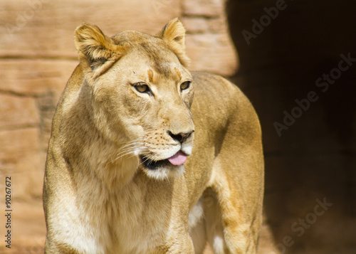 Obraz premium Lion sticking tongue out