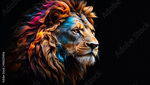 Naklejka premium Lion the Head of a Lion in a Multicolored Flame Abstract