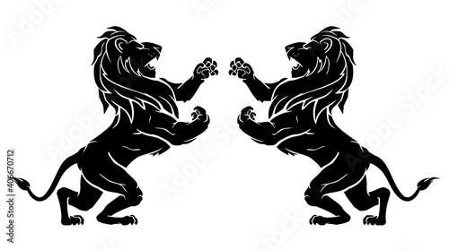 Obraz premium Lion Upright Attack, Wildlife Illustration